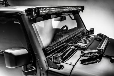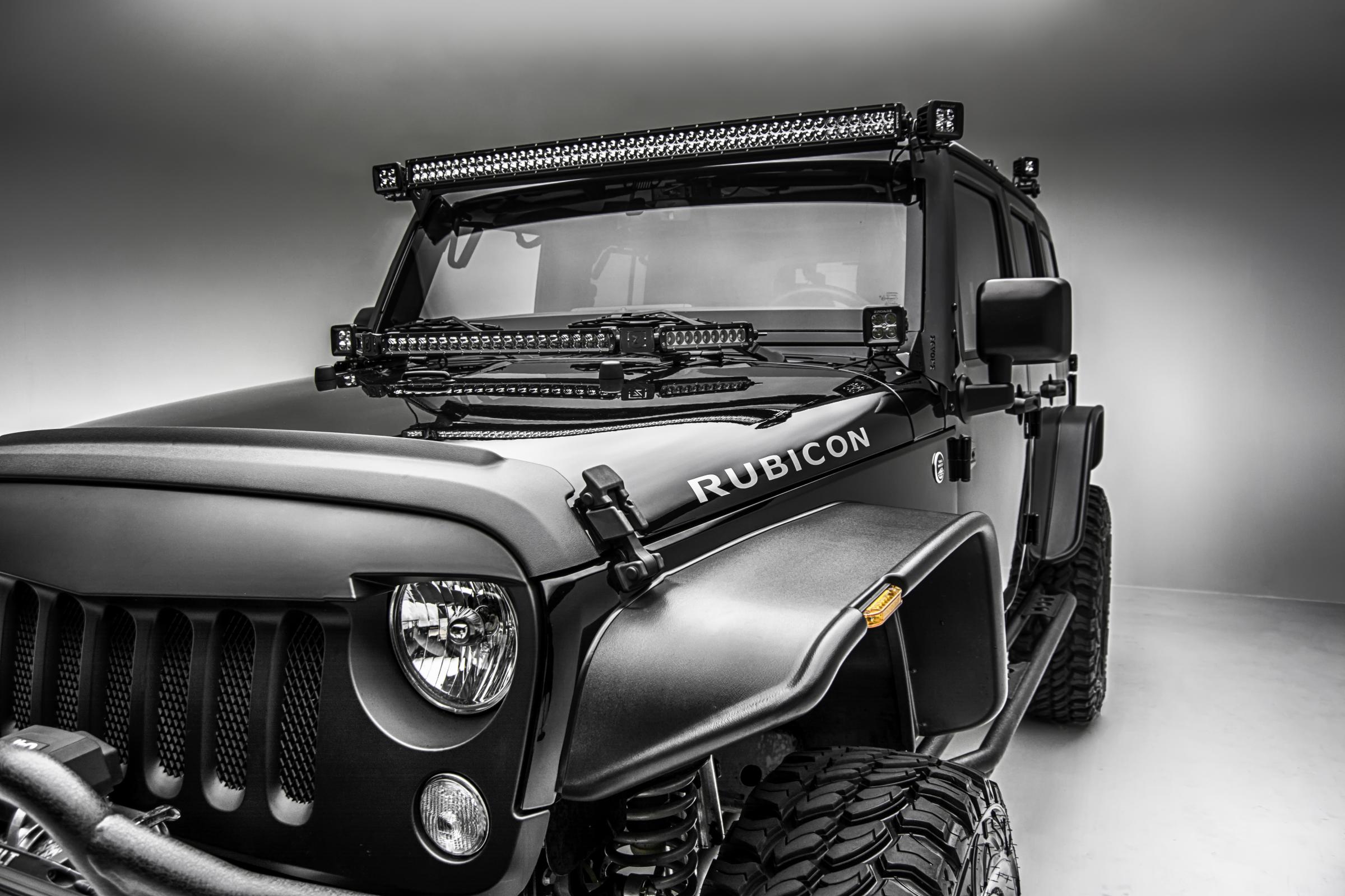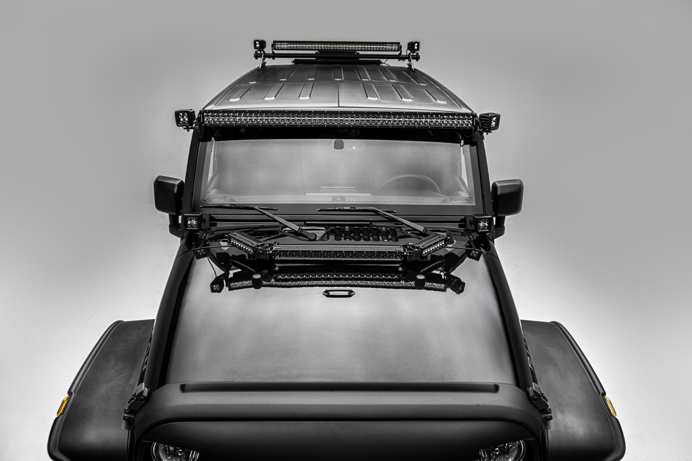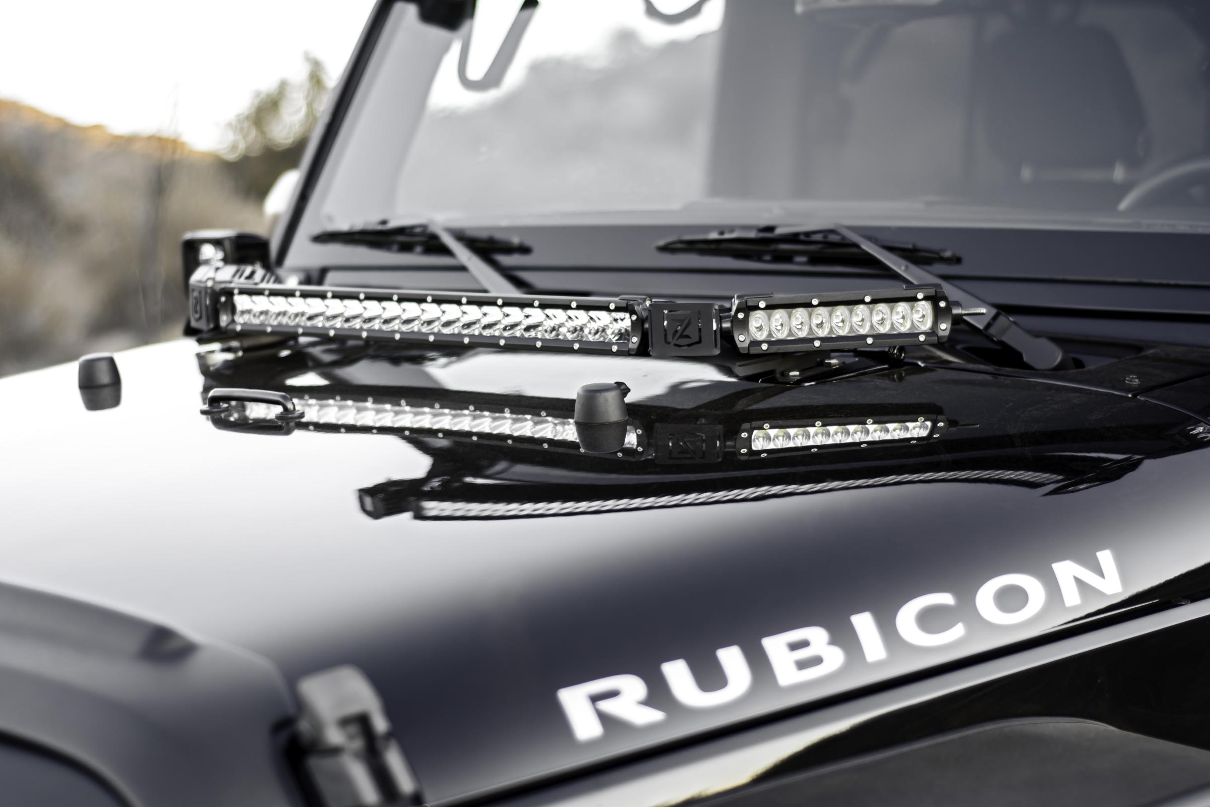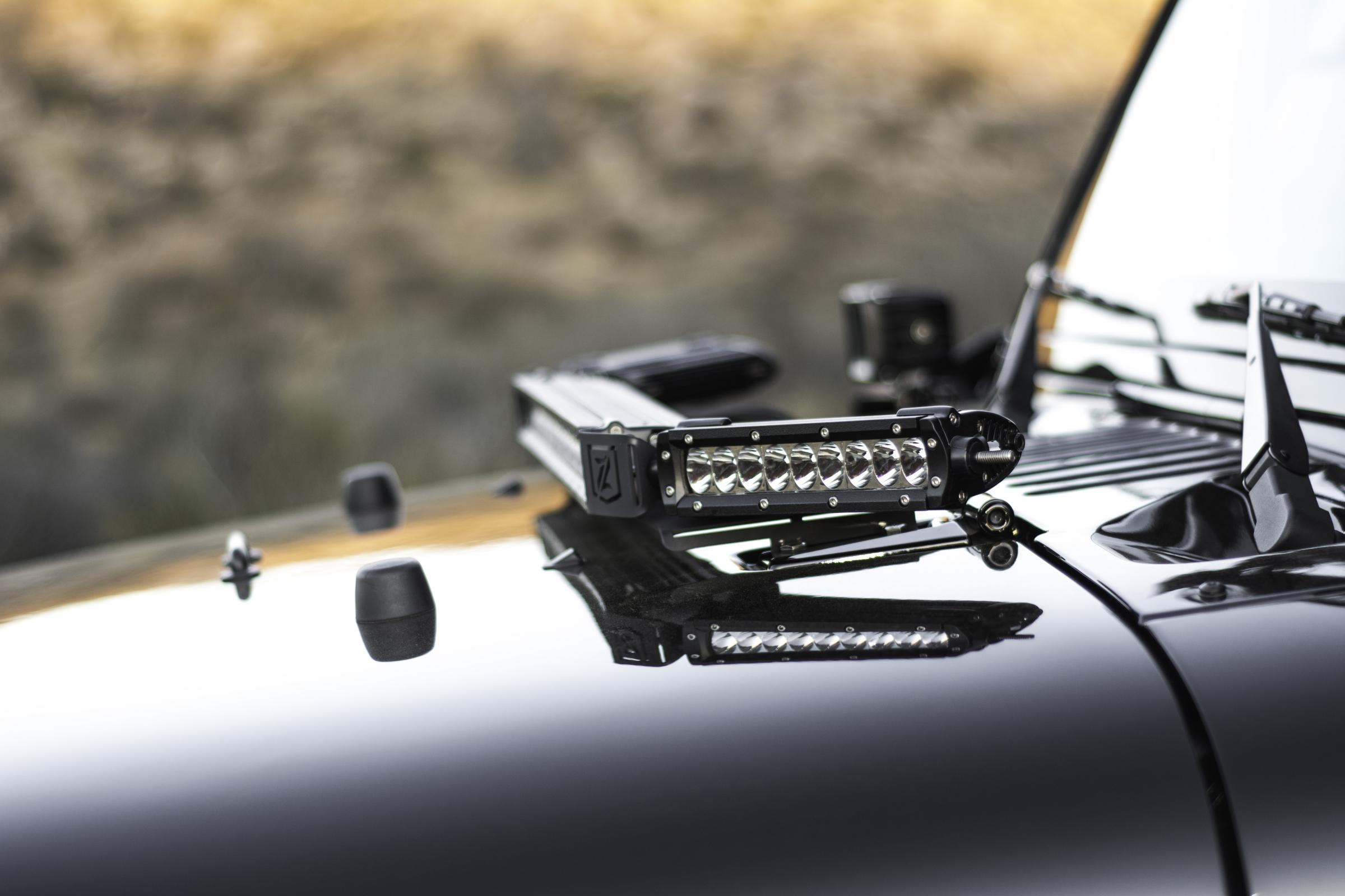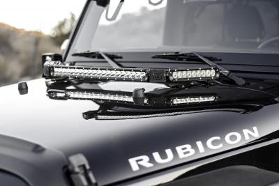 2007-2018 Jeep JK Hood Hinge LED Kit Incl. (1) 20 Inch and (2) 6 Inch LED Single Row Slim Light Bars PN Z344813-KIT