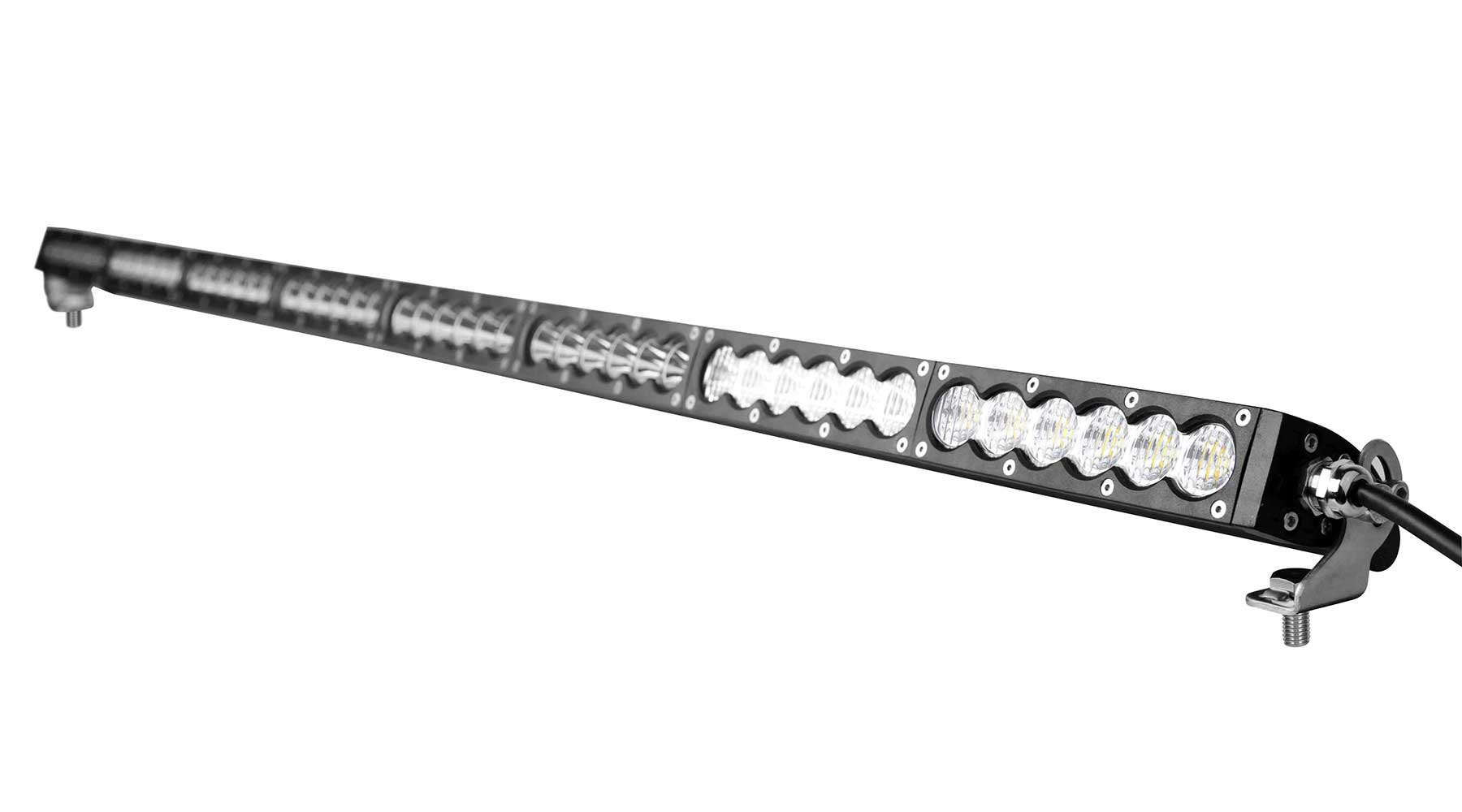 Melt the darkness away with the Quake Carbon Series LED Light Bar! Utilizing powerful CREE diodes, Quake Carbon Series LED technology uses less power than traditional Halogen/HID lights, causing less strain on your vehicles electrical system. This light bars combo beam pattern offers the most effective light projection for the most aggressive driving styles by combining a focused, 30 degree, long range beam, that allows drivers to see further, with a wide 120 degree beam that illuminates unseen objects.