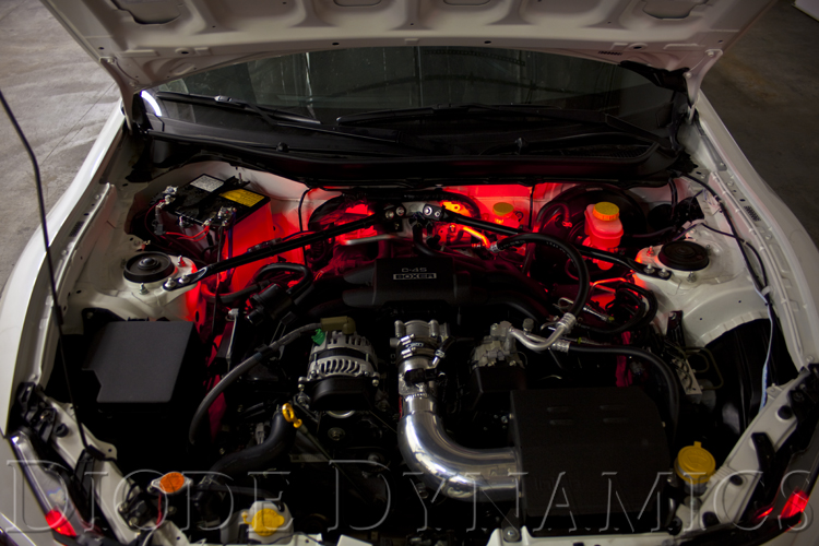 Custom Appearance. Add a custom look to your vehicle with our Single-Color Engine Bay LED Kit! Available in Red, Green, Blue, Amber, Warm White, and Cool White, these LED Strips can be installed on any vehicle!