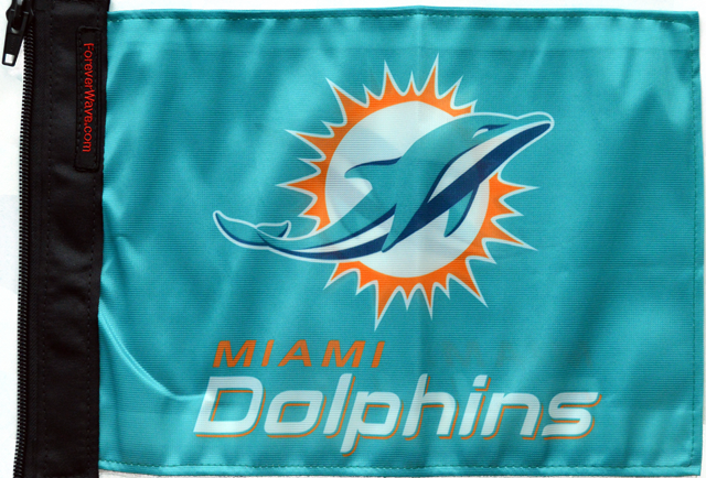 The Miami Dolphins Flag zips on to any size sleeve. andForever Wave is the only patented interchangeable flag system for Roll Bars, CB Antennas, LED Whips, UTV's Golf Carts, Boats, and More!. The system consists of two parts: the sleeve and the interchangeable flags that attach to it.
