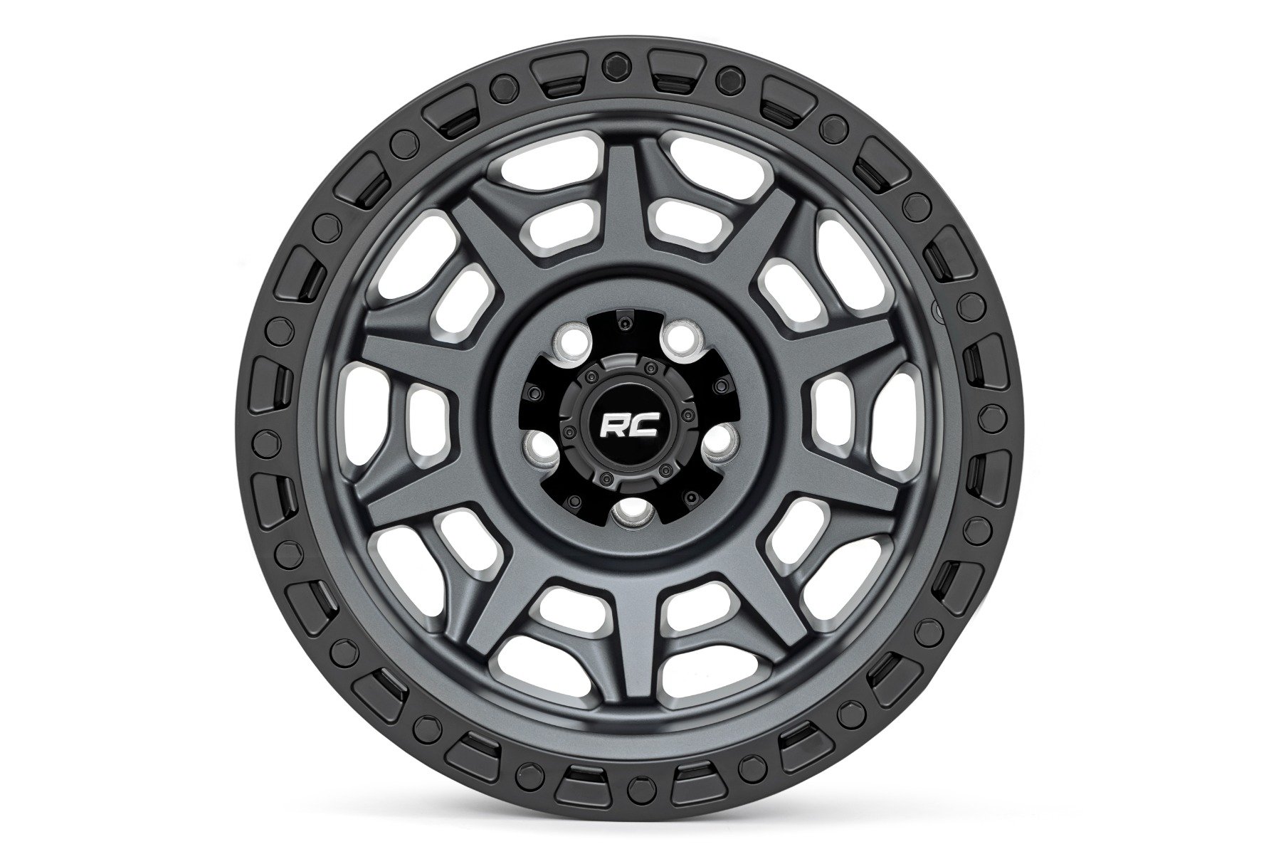 Rough Country 85 Series Wheel Simulated Beadlock Gunmetal Gray/Black 17x9 5x4.5 -12mm Rough Country