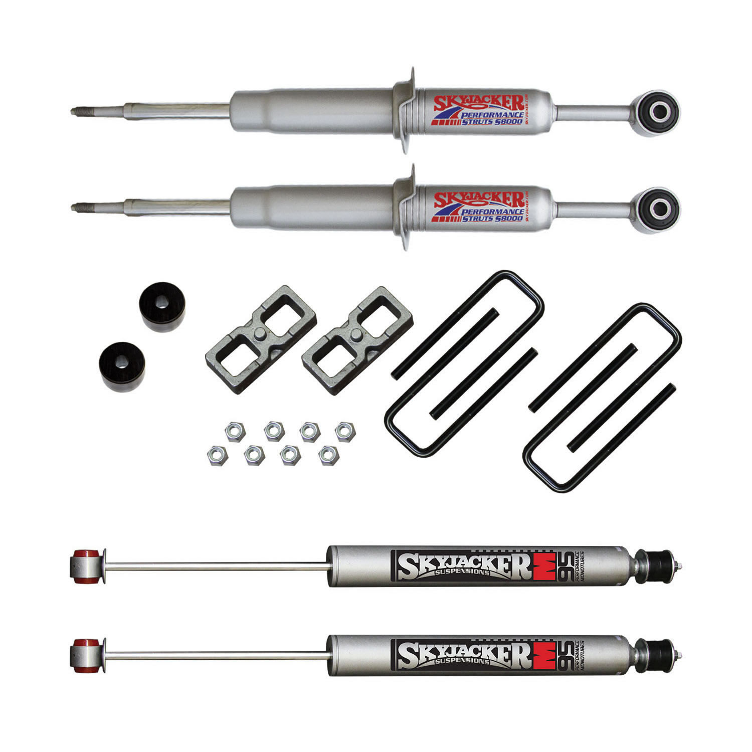Suspension Lift Kit w/Shock 3 Inch Lift 05-15 Toyota Tacoma Incl. Front Struts Front Diff. Drop Kit Rear Lift Blocks U-Bolts Rear M95 Monotube Shocks Skyjacker
