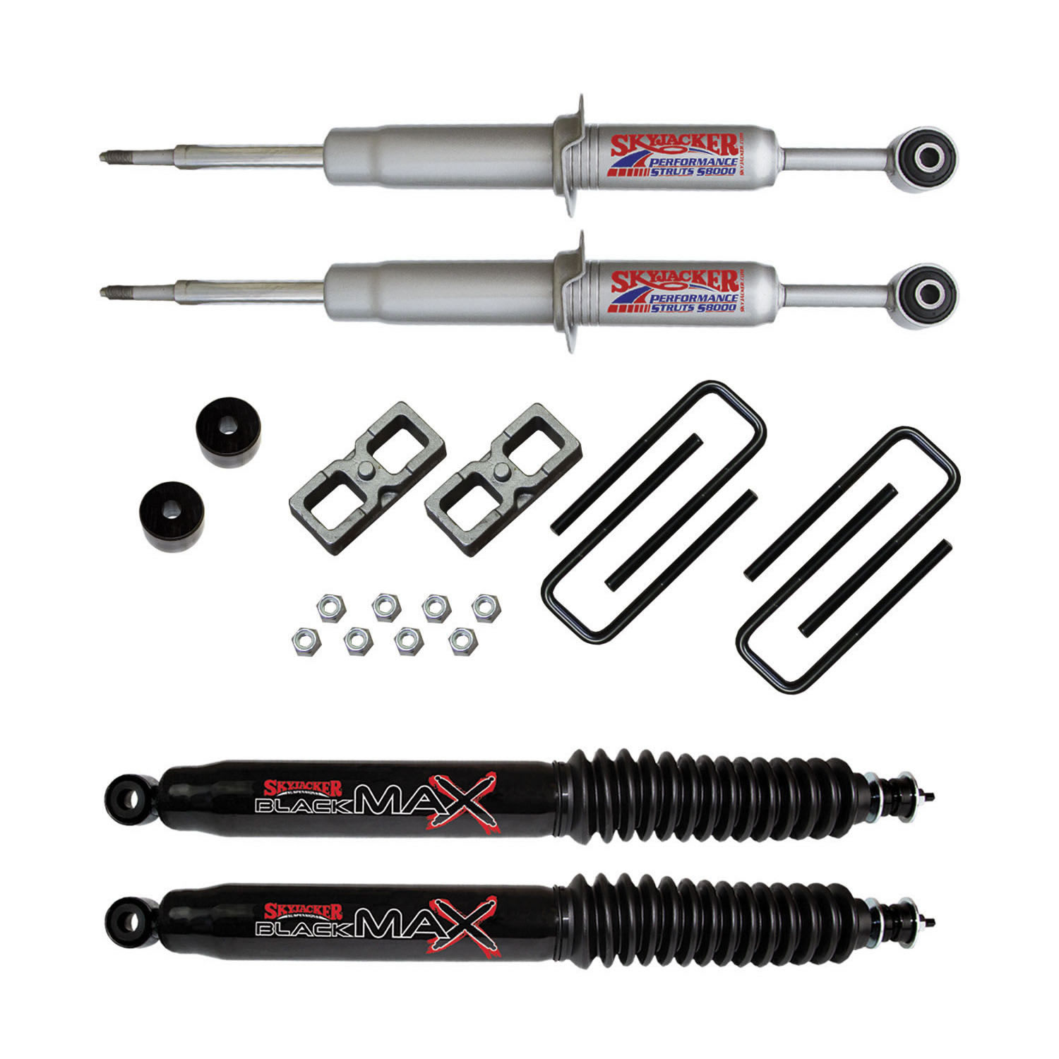 Suspension Lift Kit w/Shock 3 Inch Lift 05-15 Toyota Tacoma Incl. Front Struts Front Diff. Drop Kit Rear Lift Blocks U-Bolts Rear Black Max Shocks Skyjacker